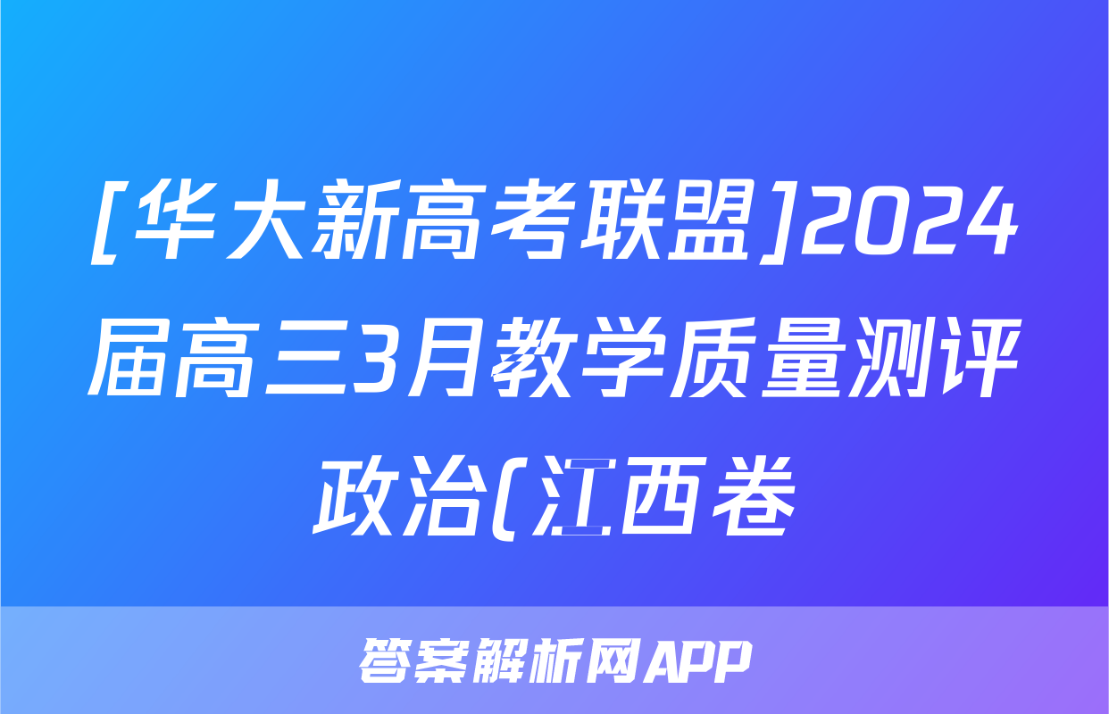 [华大新高考联盟]2024届高三3月教学质量测评政治(江西卷)答案正在持续更新,目前2024-2025英语周报答案网为大家整理了相关试题及答案,供大家查缺补漏,高效提升成绩。