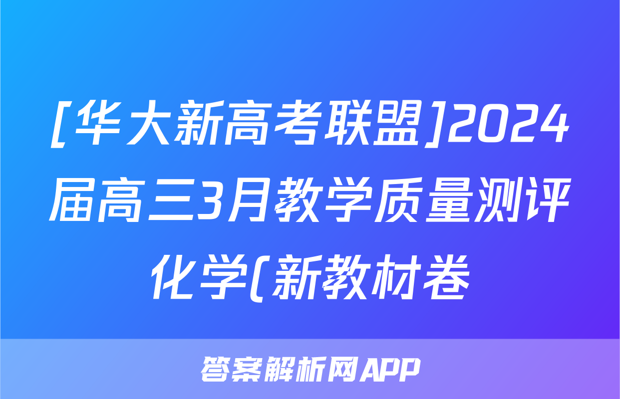 [华大新高考联盟]2024届高三3月教学质量测评化学(新教材卷)试题正在持续更新,目前2024-2025英语周报答案网为大家整理了相关试题及答案,供大家查缺补漏,高效提升成绩。