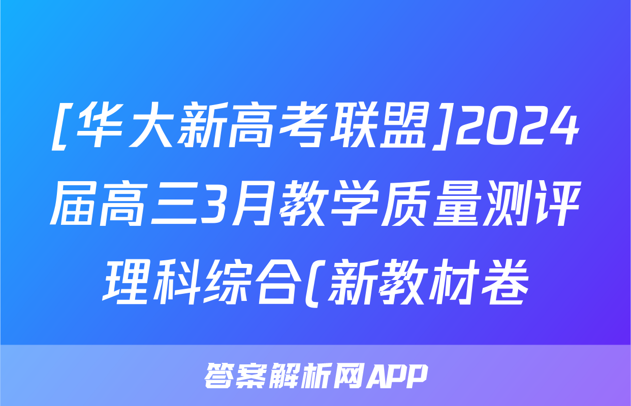 [华大新高考联盟]2024届高三3月教学质量测评理科综合(新教材卷)试题