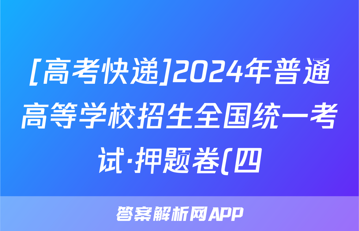 [高考快递]2024年普通高等学校招生全国统一考试·押题卷(四)4化学(新高考)试题正在持续更新,目前2024-2025英语周报答案网为大家整理了相关试题及答案,供大家查缺补漏,高效提升成绩。