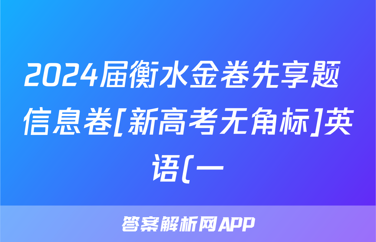 2024届衡水金卷先享题 信息卷[新高考无角标]英语(一)1答案正在持续更新,目前2024-2025英语周报答案网为大家整理了相关试题及答案,供大家查缺补漏,高效提升成绩。