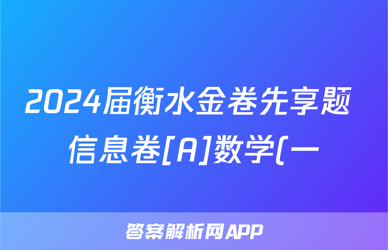 2024届衡水金卷先享题 信息卷[A]数学(一)1试题正在持续更新,目前2024-2025英语周报答案网为大家整理了相关试题及答案,供大家查缺补漏,高效提升成绩。