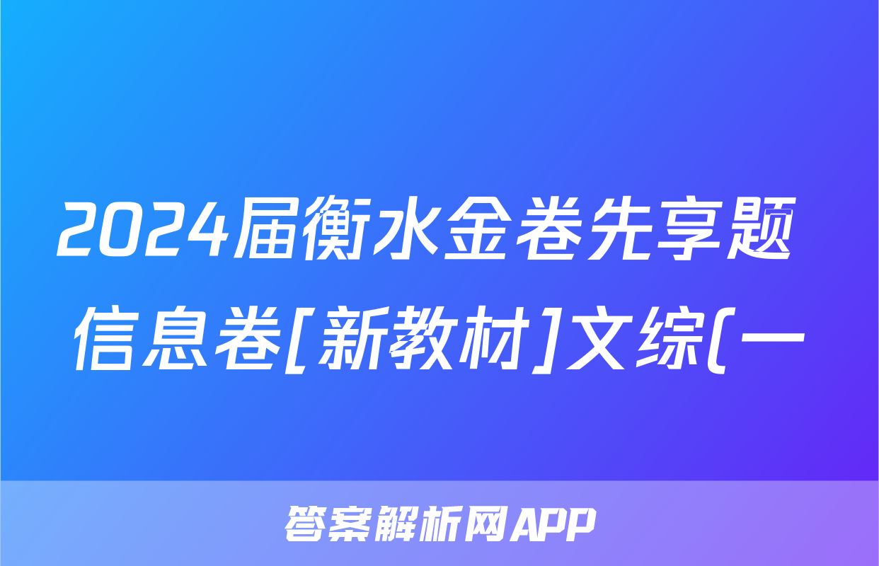 2024届衡水金卷先享题 信息卷[新教材]文综(一)1试题正在持续更新,目前2024-2025英语周报答案网为大家整理了相关试题及答案,供大家查缺补漏,高效提升成绩。