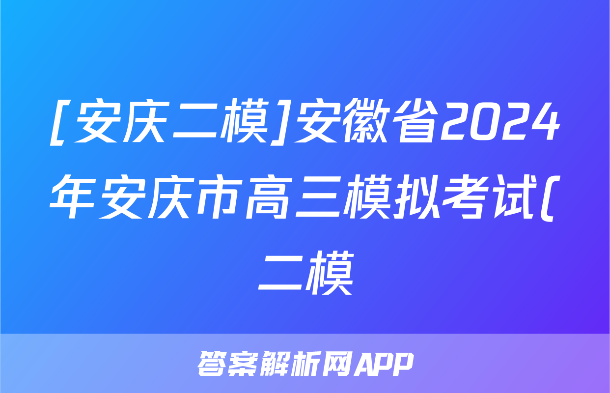 9、2024安徽省安庆市二模