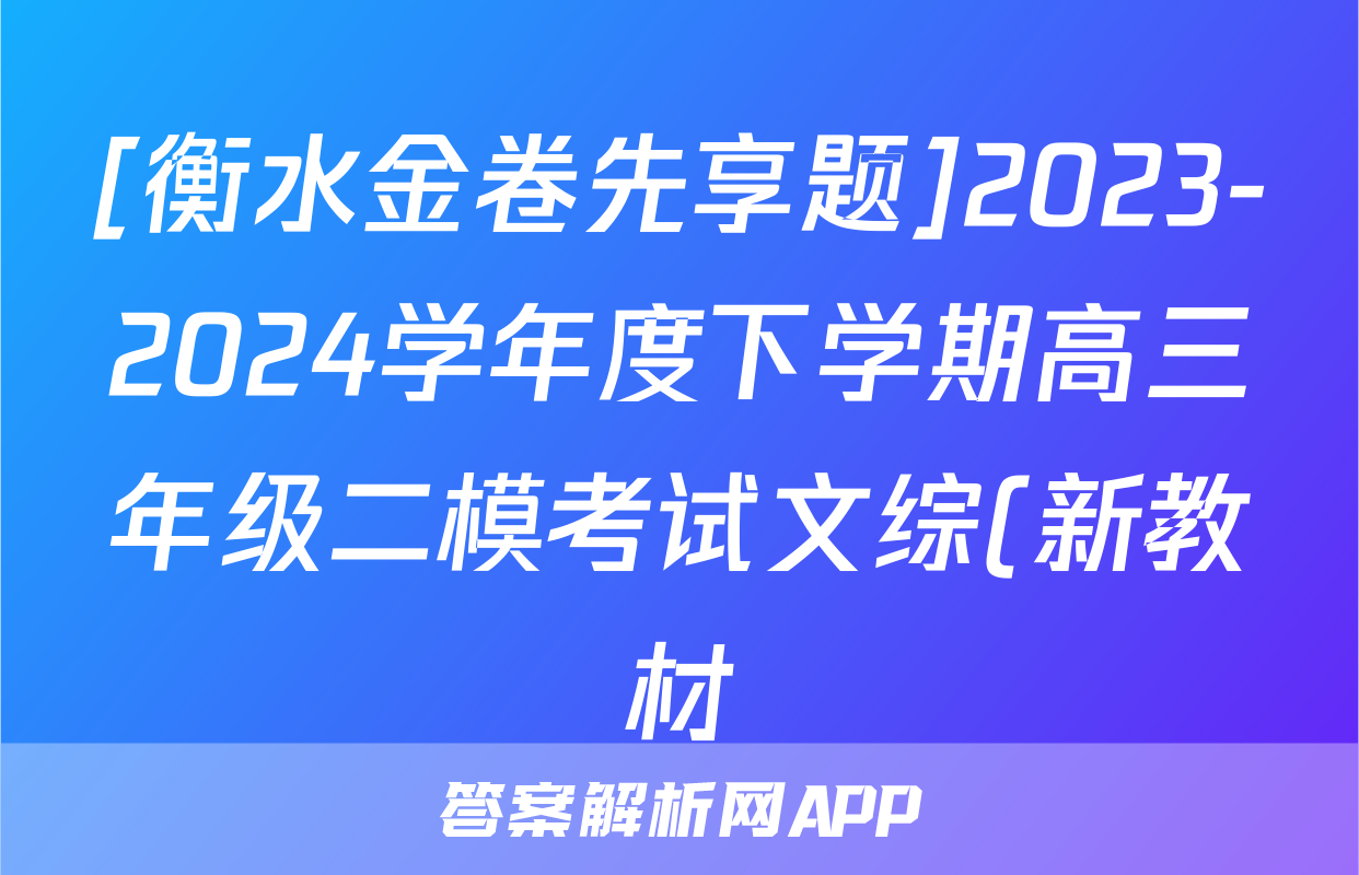 [衡水金卷先享题]2023-2024学年度下学期高三年级二模考试文综(新教材)试题正在持续更新,目前2024-2025英语周报答案网为大家整理了相关试题及答案,供大家查缺补漏,高效提升成绩。