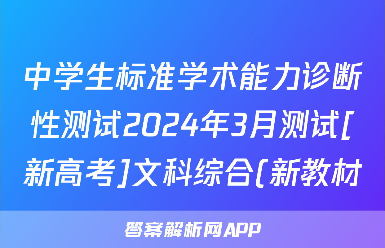 中学生标准学术能力诊断性测试2024年3月测试[新高考]文科综合(新教材)试题正在持续更新,目前2024-2025英语周报答案网为大家整理了相关试题及答案,供大家查缺补漏,高效提升成绩。