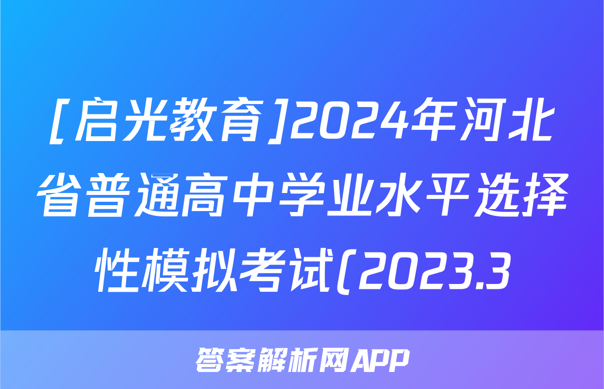 1、[启光教育]2024年河北省普通高中学业水选择性模拟考试(2023.3)地