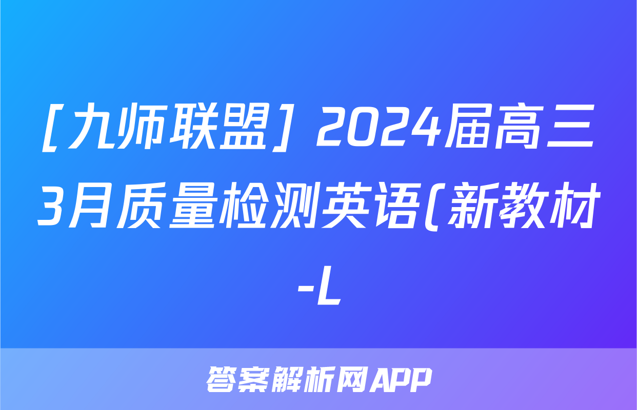 [九师联盟] 2024届高三3月质量检测英语(新教材-L)答案