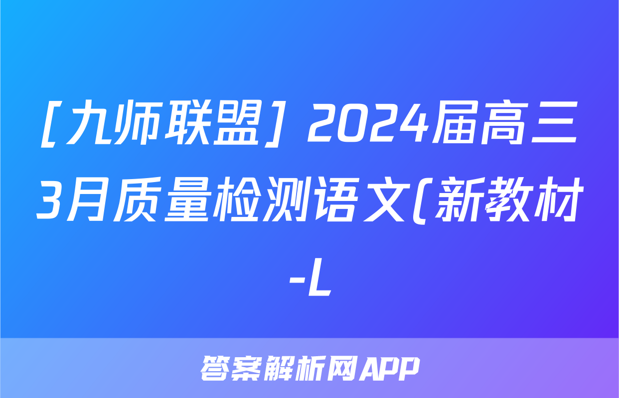 [九师联盟] 2024届高三3月质量检测语文(新教材-L)答案正在持续更新,目前2024-2025英语周报答案网为大家整理了相关试题及答案,供大家查缺补漏,高效提升成绩。