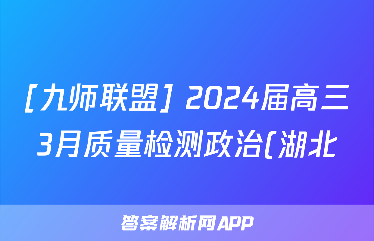 [九师联盟] 2024届高三3月质量检测政治(湖北)答案正在持续更新,目前2024-2025英语周报答案网为大家整理了相关试题及答案,供大家查缺补漏,高效提升成绩。