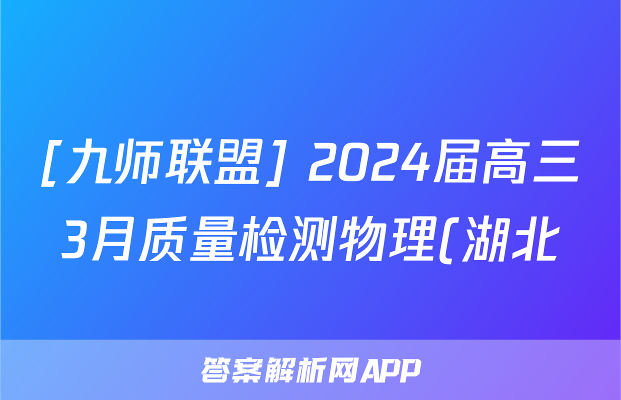 [九师联盟] 2024届高三3月质量检测物理(湖北)试题正在持续更新,目前2024-2025英语周报答案网为大家整理了相关试题及答案,供大家查缺补漏,高效提升成绩。