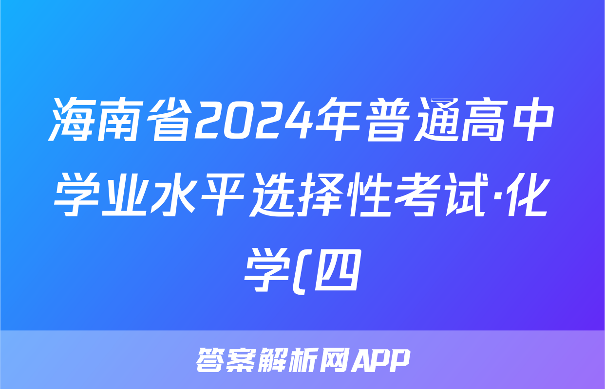 海南省2024年普通高中学业水平选择性考试·化学(四)4[24·(新高考)ZX·MNJ·化学·HAIN]答案