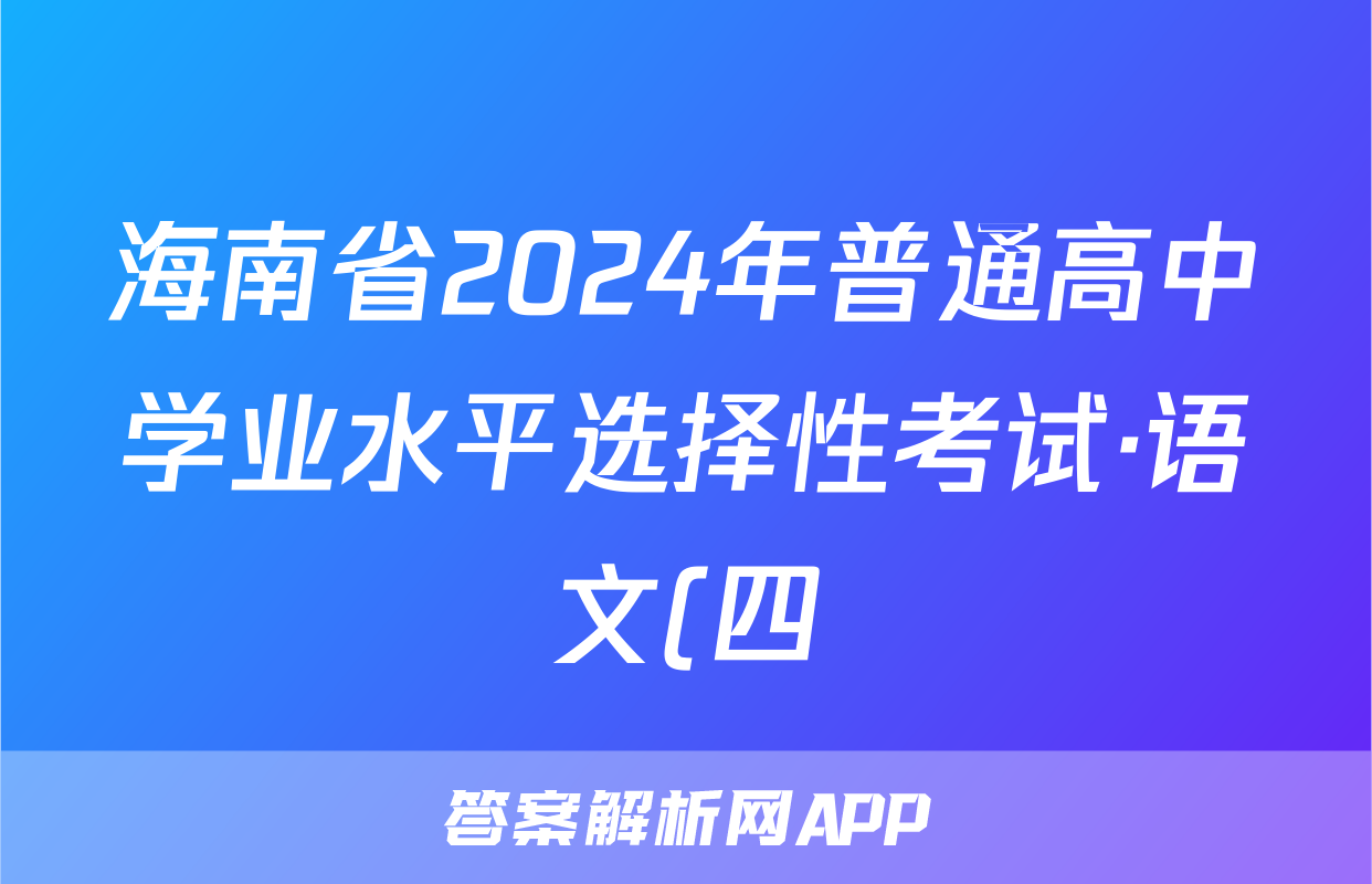 海南省2024年普通高中学业水平选择性考试·语文(四)4[24·(新高考)ZX·MNJ·语文·HAIN]答案正在持续更新,目前2024-2025英语周报答案网为大家整理了相关试题及答案,供大家查缺补漏,高效提升成绩。