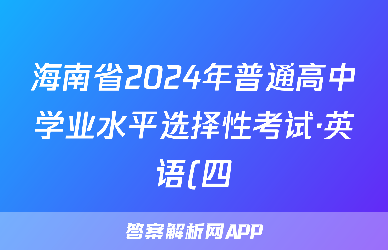 海南省2024年普通高中学业水平选择性考试·英语(四)4[24·(新高考)ZX·MNJ·英语·HAIN]试题
