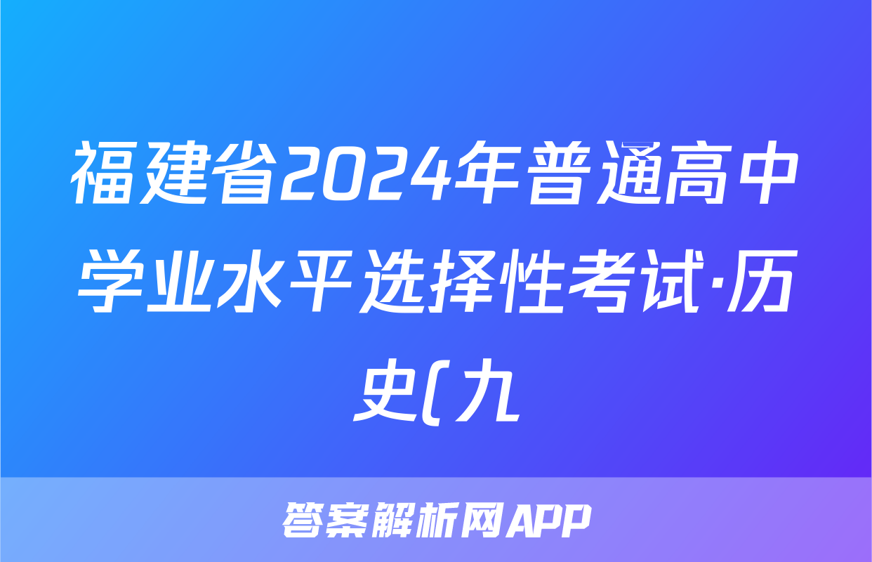 福建省2024年普通高中学业水平选择性考试·历史(九)9[24·(新高考)ZX·MNJ·历史·FJ]试题