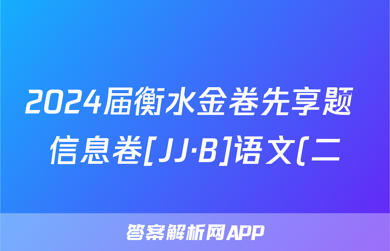 2024届衡水金卷先享题 信息卷[JJ·B]语文(二)2答案正在持续更新,目前2024-2025英语周报答案网为大家整理了相关试题及答案,供大家查缺补漏,高效提升成绩。