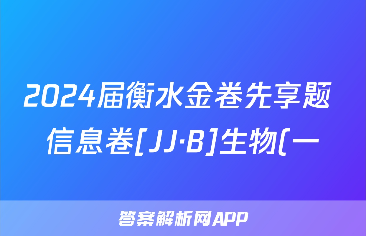 2024届衡水金卷先享题 信息卷[JJ·B]生物(一)1答案正在持续更新,目前2024-2025英语周报答案网为大家整理了相关试题及答案,供大家查缺补漏,高效提升成绩。