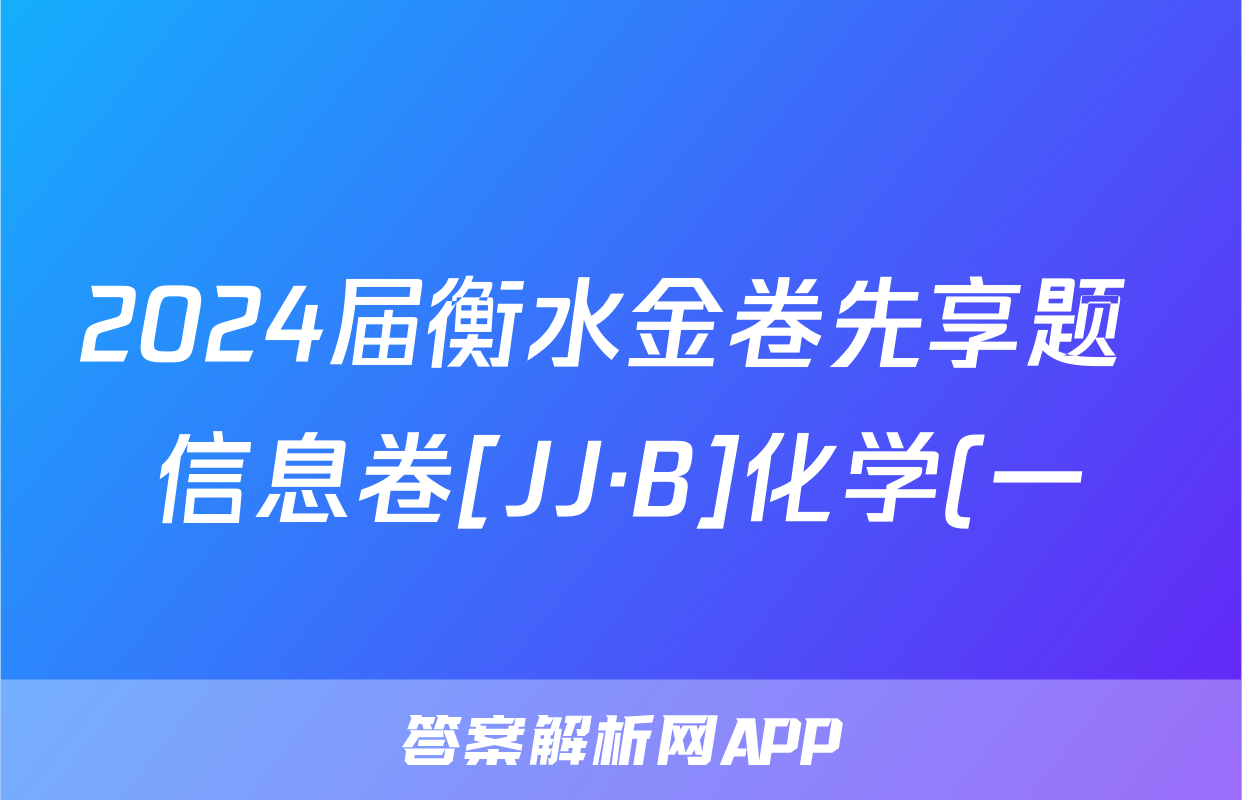 2024届衡水金卷先享题 信息卷[JJ·B]化学(一)1答案正在持续更新,目前2024-2025英语周报答案网为大家整理了相关试题及答案,供大家查缺补漏,高效提升成绩。