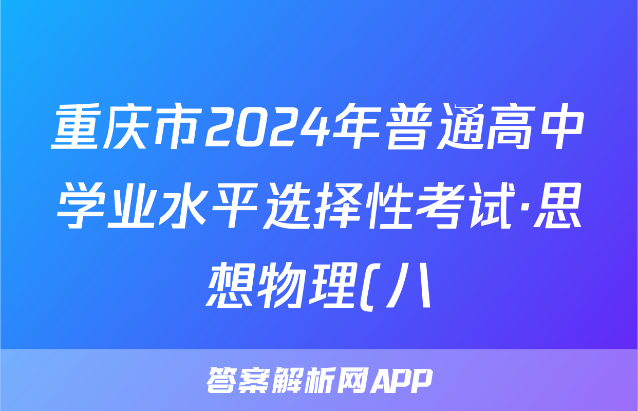重庆市2024年普通高中学业水平选择性考试·思想物理(八)8[24·(新高考)ZX·MNJ·思想物理·CQ]试题