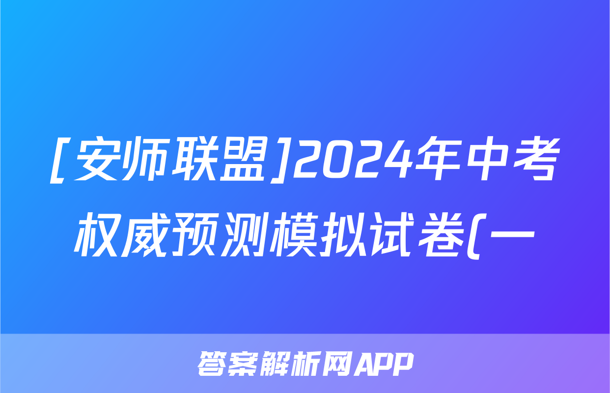 [安师联盟]2024年中考权威预测模拟试卷(一)1物理试题正在持续更新,目前2024-2025英语周报答案网为大家整理了相关试题及答案,供大家查缺补漏,高效提升成绩。