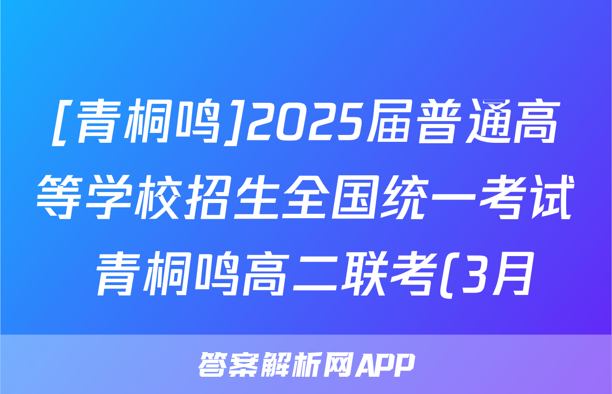 [青桐鸣]2025届普通高等学校招生全国统一考试 青桐鸣高二联考(3月)物理(A)答案正在持续更新,目前2024-2025英语周报答案网为大家整理了相关试题及答案,供大家查缺补漏,高效提升成绩。