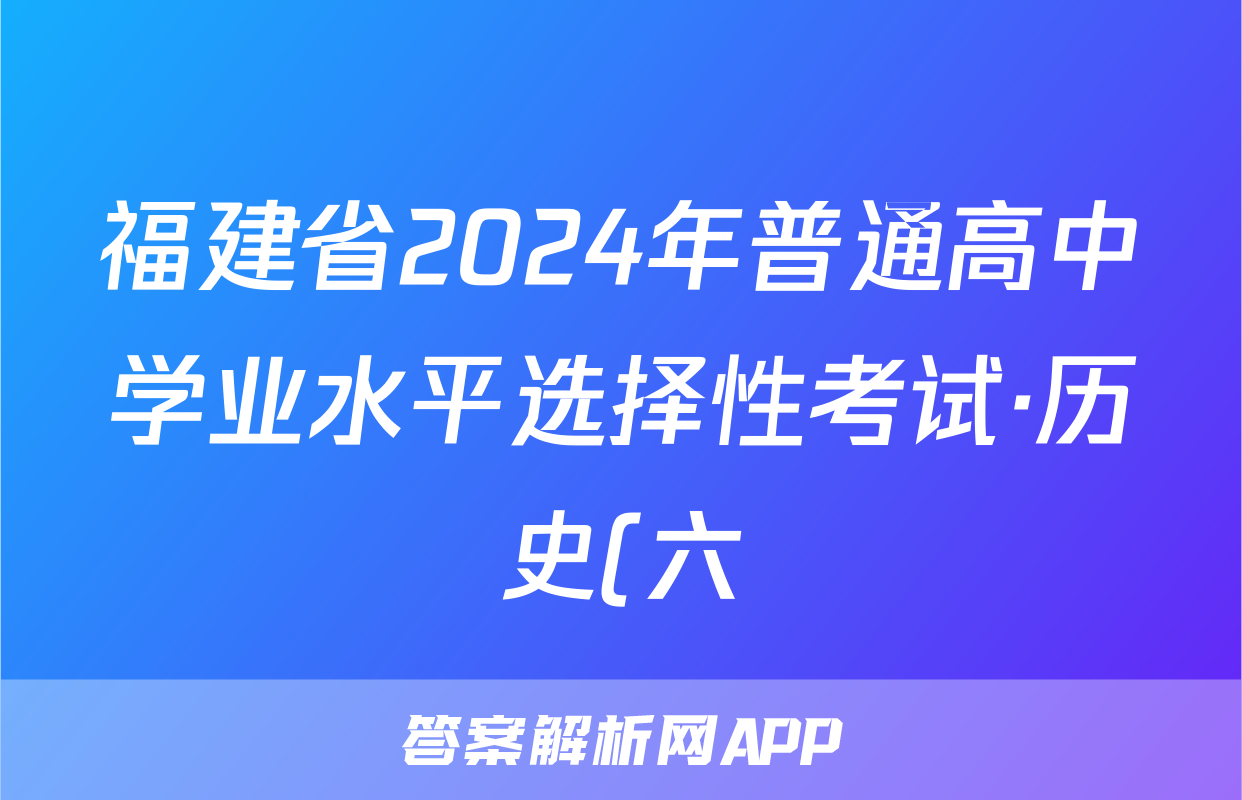 福建省2024年普通高中学业水平选择性考试·历史(六)6[24·(新高考)ZX·MNJ·历史·FJ]试题