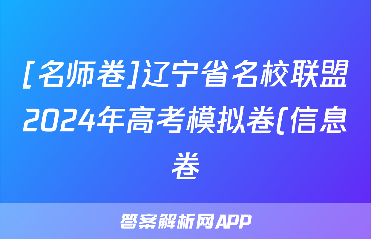 [名师卷]辽宁省名校联盟2024年高考模拟卷(信息卷)(一)1化学(辽宁省)试题正在持续更新,目前2024-2025英语周报答案网为大家整理了相关试题及答案,供大家查缺补漏,高效提升成绩。