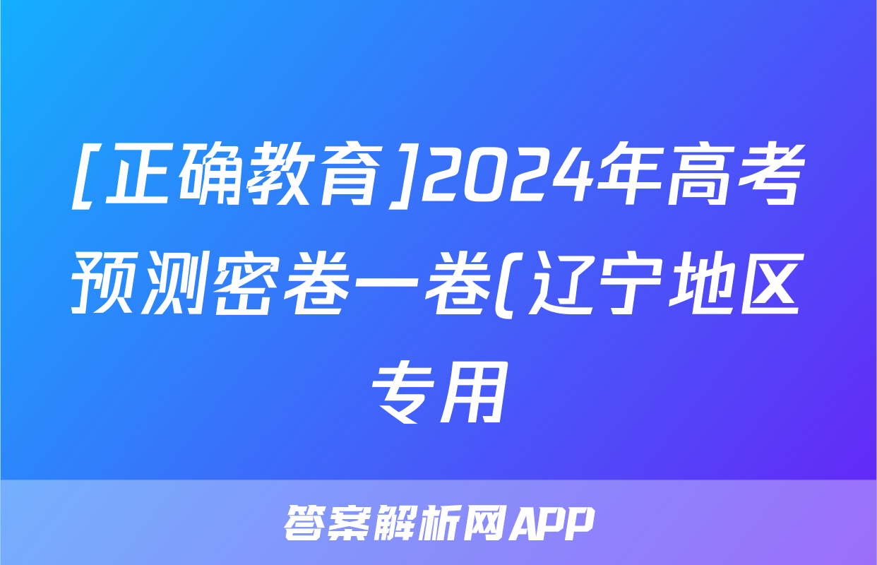 [正确教育]2024年高考预测密卷一卷(辽宁地区专用)化学(辽宁)答案正在持续更新,目前2024-2025英语周报答案网为大家整理了相关试题及答案,供大家查缺补漏,高效提升成绩。