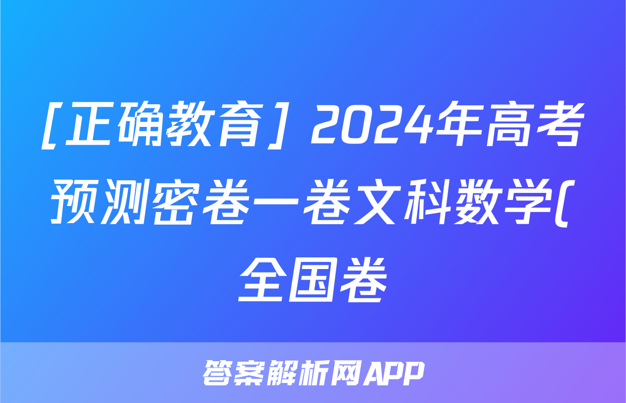 [正确教育] 2024年高考预测密卷一卷文科数学(全国卷)答案正在持续更新,目前2024-2025英语周报答案网为大家整理了相关试题及答案,供大家查缺补漏,高效提升成绩。