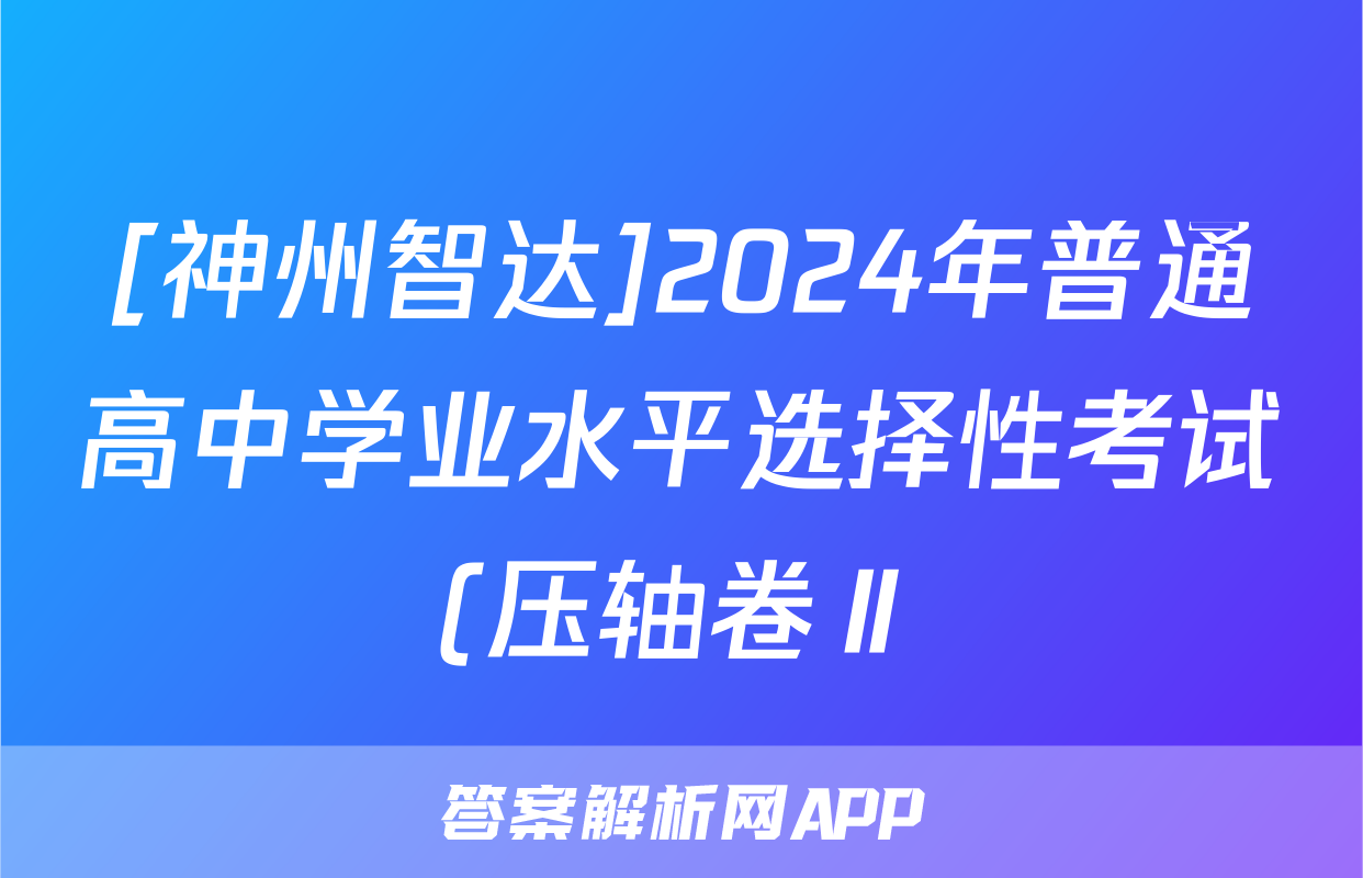 [神州智达]2024年普通高中学业水平选择性考试(压轴卷Ⅱ)(六)6化学试题正在持续更新,目前2024-2025英语周报答案网为大家整理了相关试题及答案,供大家查缺补漏,高效提升成绩。