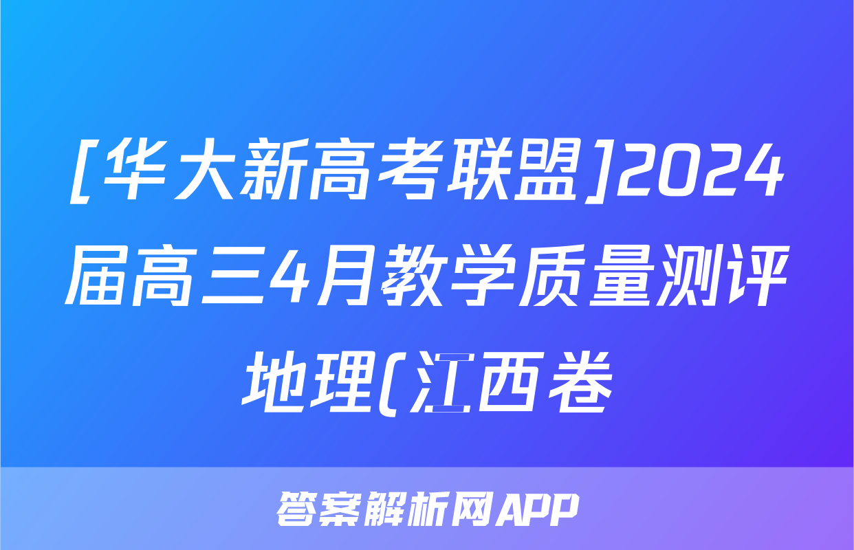 [华大新高考联盟]2024届高三4月教学质量测评地理(江西卷)答案正在持续更新,目前2024-2025英语周报答案网为大家整理了相关试题及答案,供大家查缺补漏,高效提升成绩。