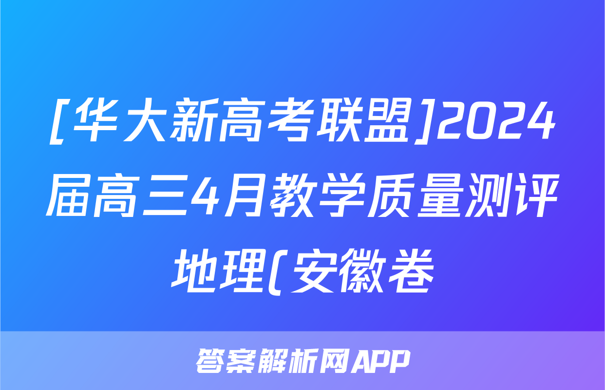[华大新高考联盟]2024届高三4月教学质量测评地理(安徽卷)试题