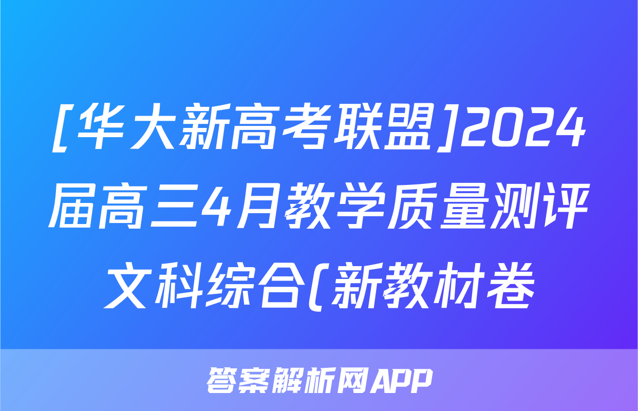 [华大新高考联盟]2024届高三4月教学质量测评文科综合(新教材卷)试题正在持续更新,目前2024-2025英语周报答案网为大家整理了相关试题及答案,供大家查缺补漏,高效提升成绩。