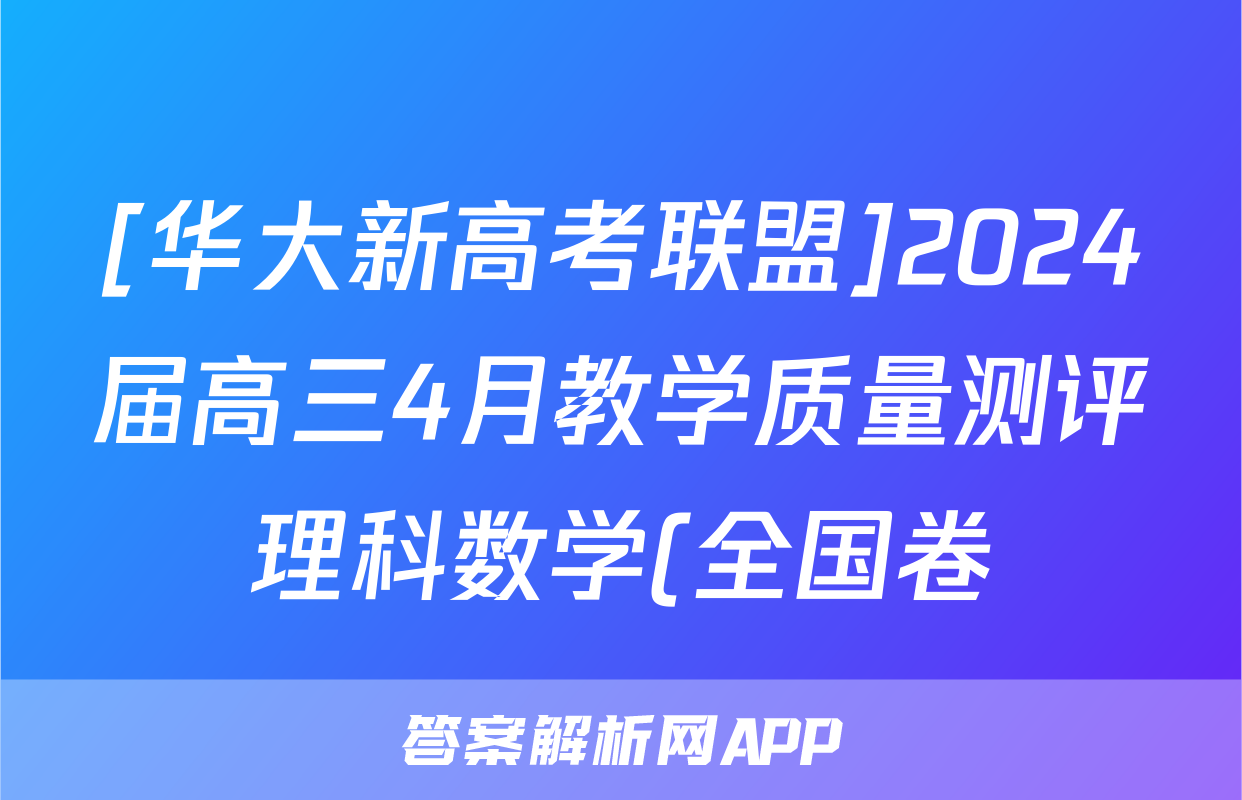 [华大新高考联盟]2024届高三4月教学质量测评理科数学(全国卷)答案正在持续更新,目前2024-2025英语周报答案网为大家整理了相关试题及答案,供大家查缺补漏,高效提升成绩。