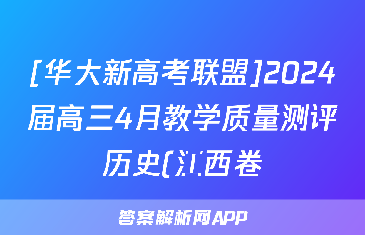 [华大新高考联盟]2024届高三4月教学质量测评历史(江西卷)答案正在持续更新,目前2024-2025英语周报答案网为大家整理了相关试题及答案,供大家查缺补漏,高效提升成绩。