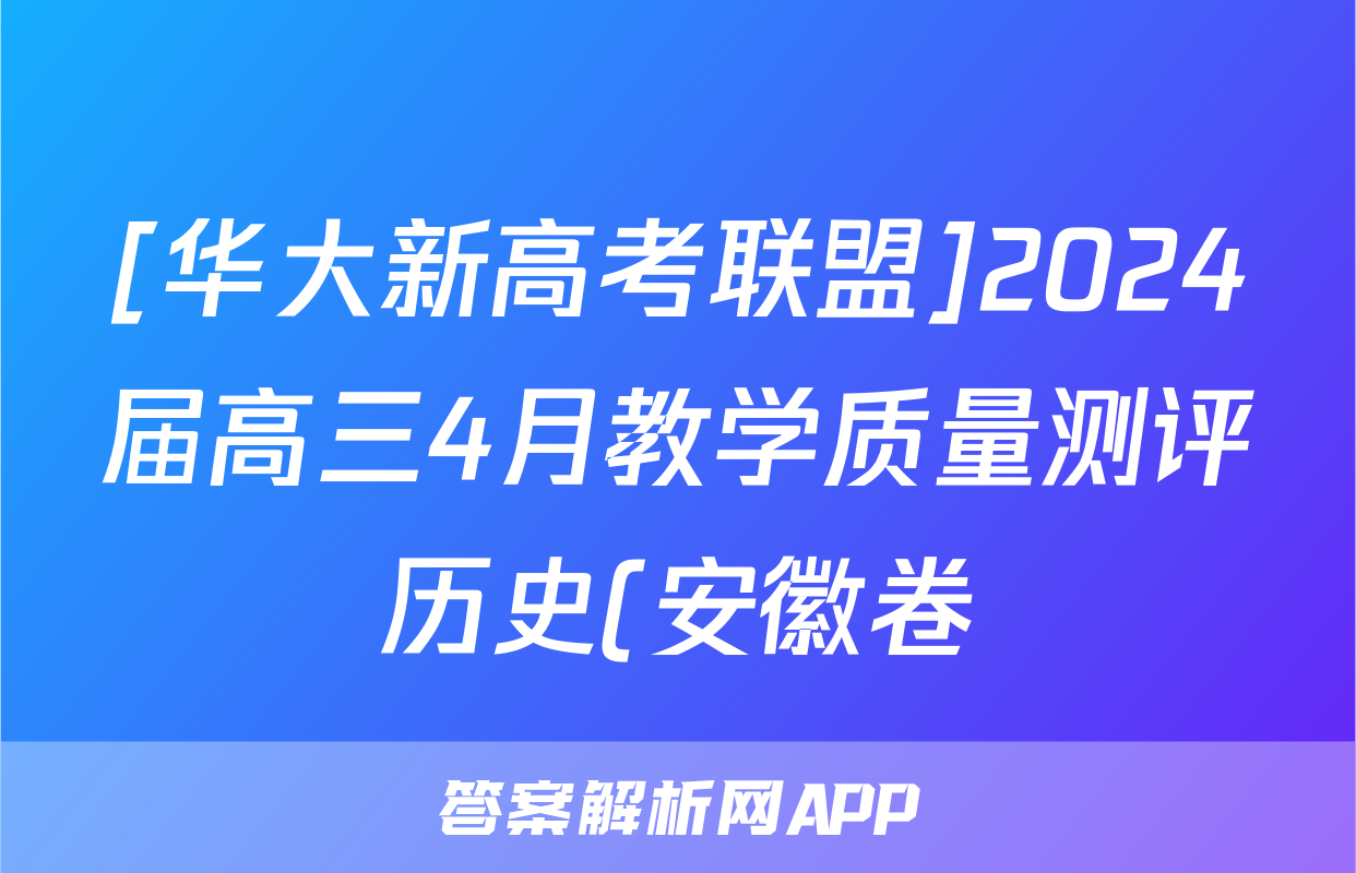 [华大新高考联盟]2024届高三4月教学质量测评历史(安徽卷)答案正在持续更新,目前2024-2025英语周报答案网为大家整理了相关试题及答案,供大家查缺补漏,高效提升成绩。
