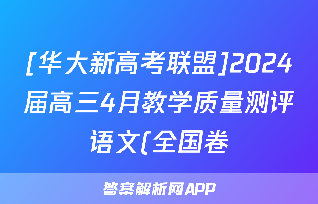 [华大新高考联盟]2024届高三4月教学质量测评语文(全国卷)答案