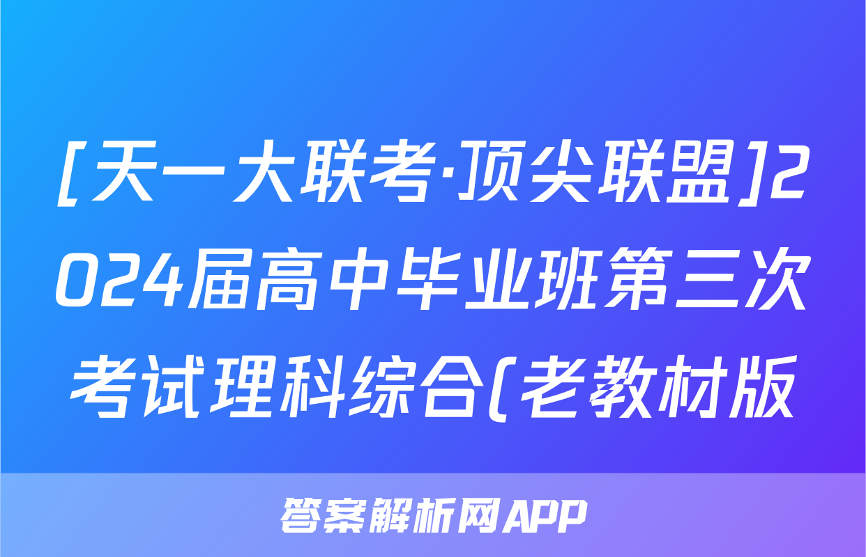 [天一大联考·顶尖联盟]2024届高中毕业班第三次考试理科综合(老教材版)试题正在持续更新,目前2024-2025英语周报答案网为大家整理了相关试题及答案,供大家查缺补漏,高效提升成绩。