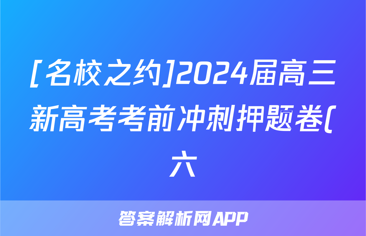 [名校之约]2024届高三新高考考前冲刺押题卷(六)6语文答案正在持续更新,目前2024-2025英语周报答案网为大家整理了相关试题及答案,供大家查缺补漏,高效提升成绩。