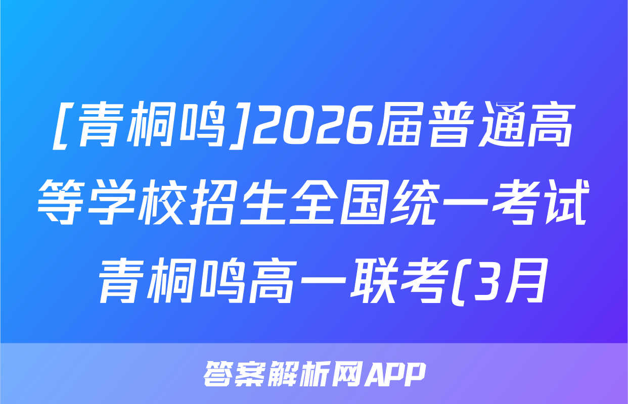 [青桐鸣]2026届普通高等学校招生全国统一考试 青桐鸣高一联考(3月)地理(人教版)试题正在持续更新,目前2024-2025英语周报答案网为大家整理了相关试题及答案,供大家查缺补漏,高效提升成绩。