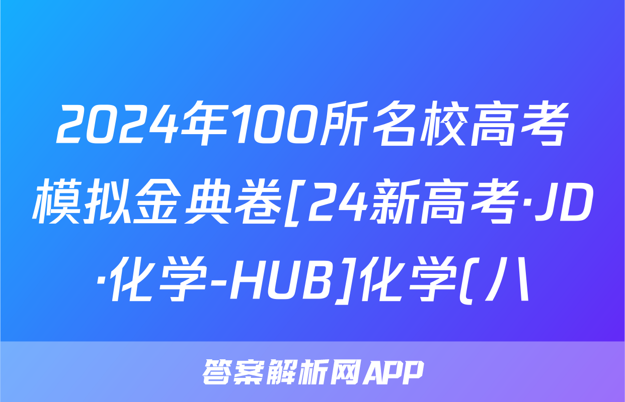 2024年100所名校高考模拟金典卷[24新高考·JD·化学-HUB]化学(八)8试题正在持续更新,目前2024-2025英语周报答案网为大家整理了相关试题及答案,供大家查缺补漏,高效提升成绩。