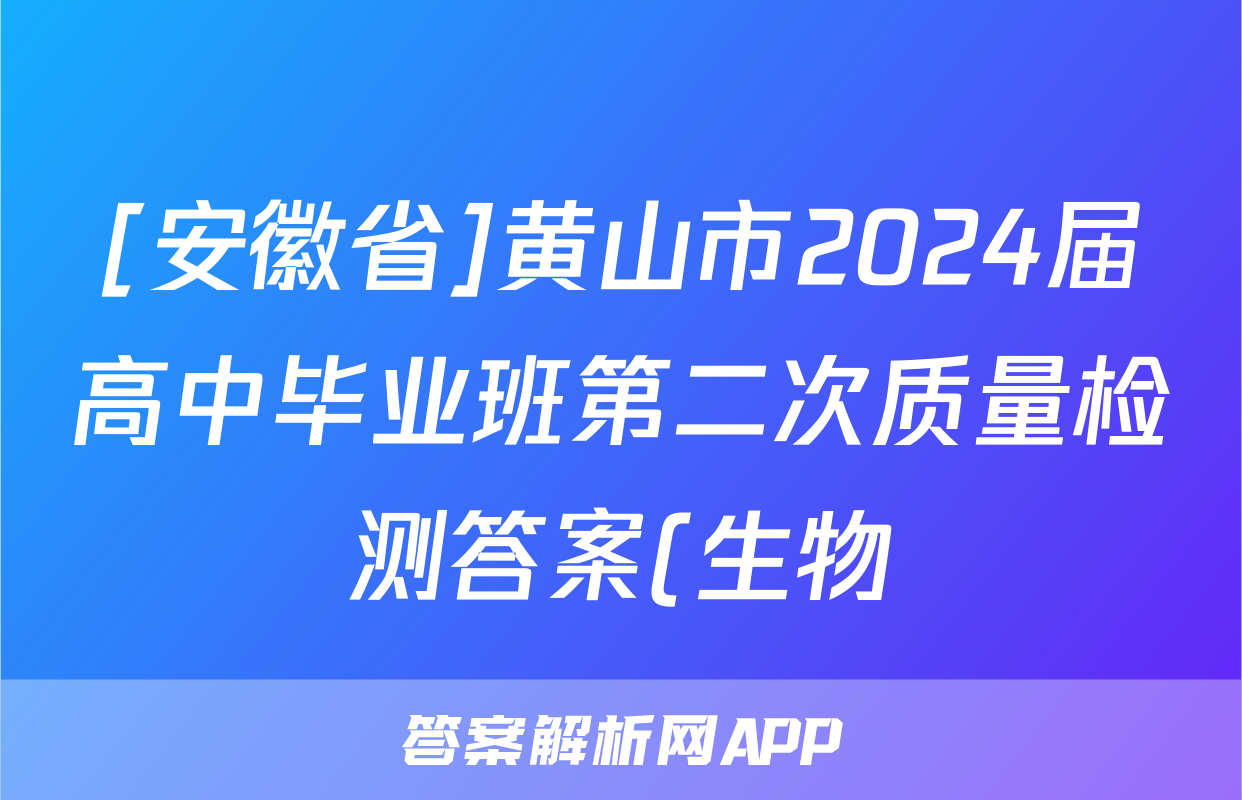 [安徽省]黄山市2024届高中毕业班第二次质量检测答案(生物)正在持续更新,目前2024-2025英语周报答案网为大家整理了相关试题及答案,供大家查缺补漏,高效提升成绩。