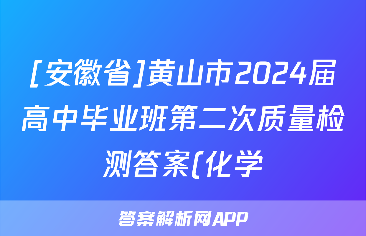 [安徽省]黄山市2024届高中毕业班第二次质量检测答案(化学)正在持续更新,目前2024-2025英语周报答案网为大家整理了相关试题及答案,供大家查缺补漏,高效提升成绩。