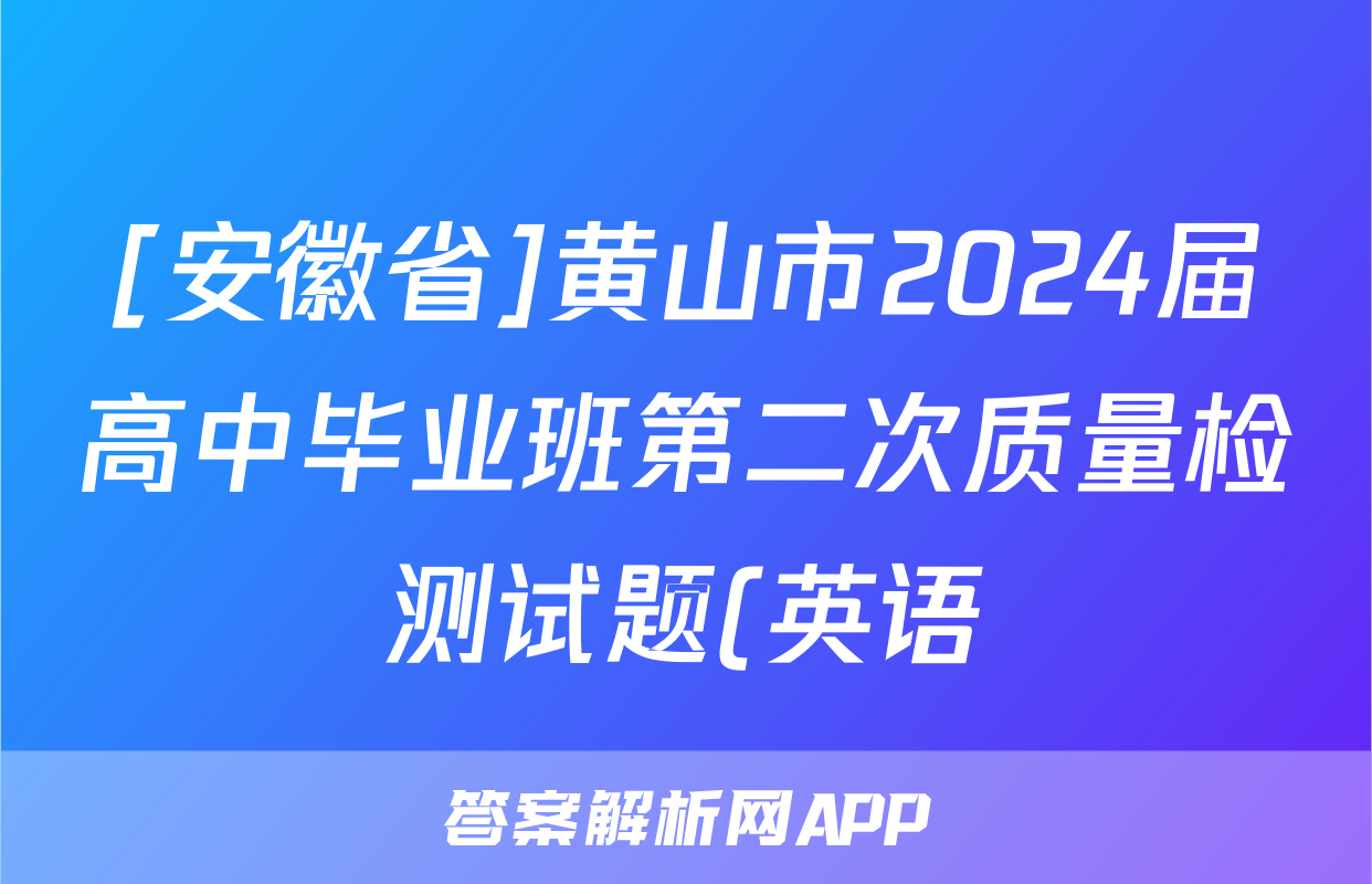 [安徽省]黄山市2024届高中毕业班第二次质量检测试题(英语)正在持续更新,目前2024-2025英语周报答案网为大家整理了相关试题及答案,供大家查缺补漏,高效提升成绩。