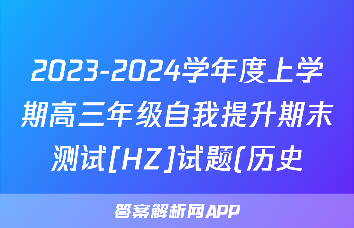 2023-2024学年度上学期高三年级自我提升期末测试[HZ]试题(历史)正在持续更新,目前2024-2025英语周报答案网为大家整理了相关试题及答案,供大家查缺补漏,高效提升成绩。