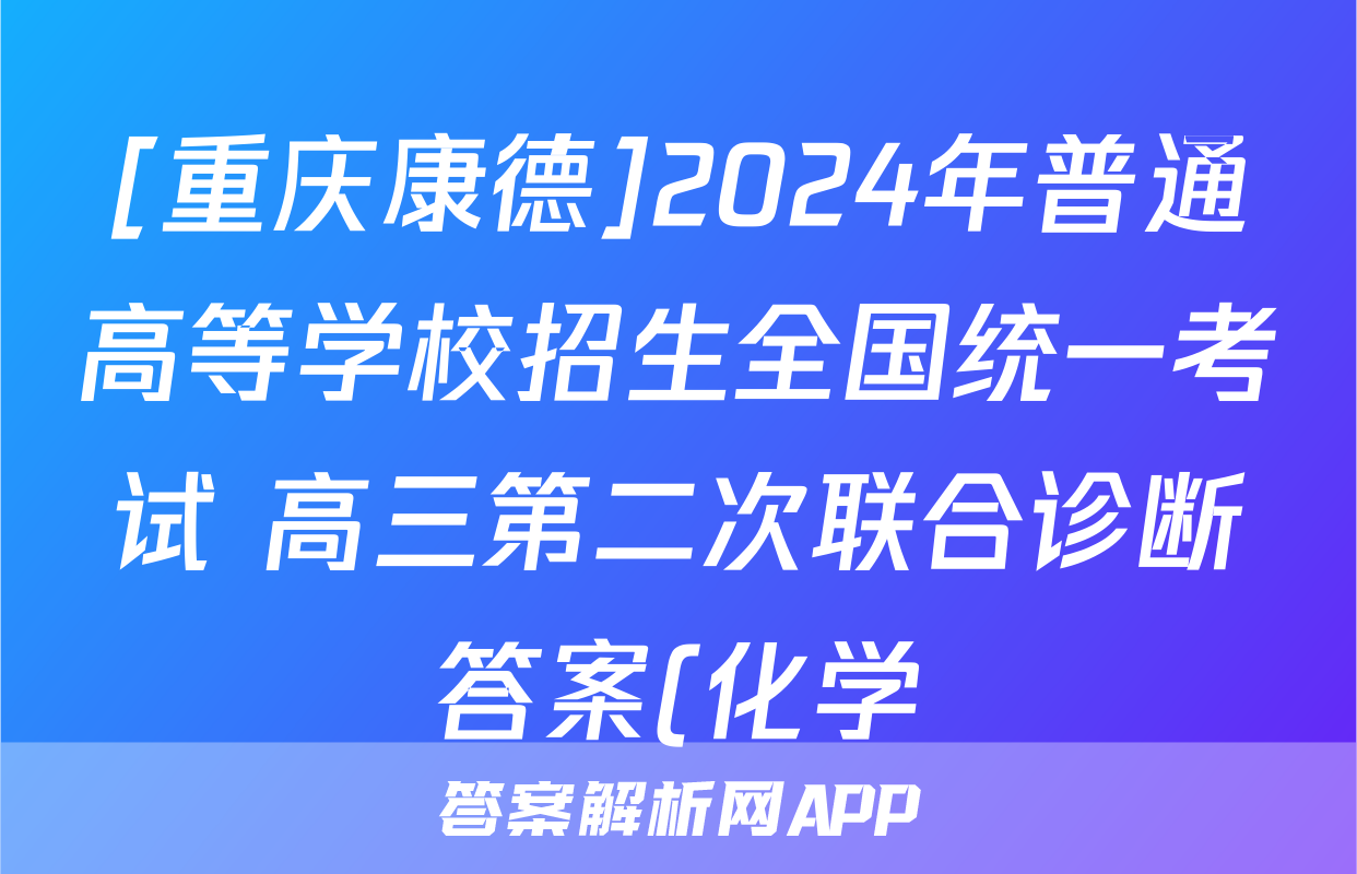 [重庆康德]2024年普通高等学校招生全国统一考试 高三第二次联合诊断答案(化学)正在持续更新,目前2024-2025英语周报答案网为大家整理了相关试题及答案,供大家查缺补漏,高效提升成绩。