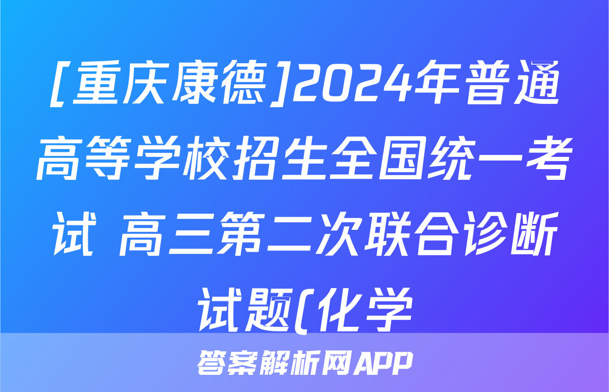 [重庆康德]2024年普通高等学校招生全国统一考试 高三第二次联合诊断试题(化学)正在持续更新,目前2024-2025英语周报答案网为大家整理了相关试题及答案,供大家查缺补漏,高效提升成绩。