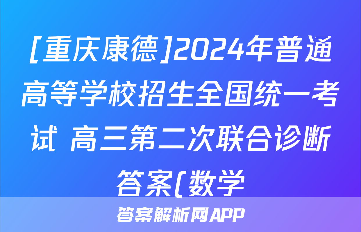 [重庆康德]2024年普通高等学校招生全国统一考试 高三第二次联合诊断答案(数学)正在持续更新,目前2024-2025英语周报答案网为大家整理了相关试题及答案,供大家查缺补漏,高效提升成绩。