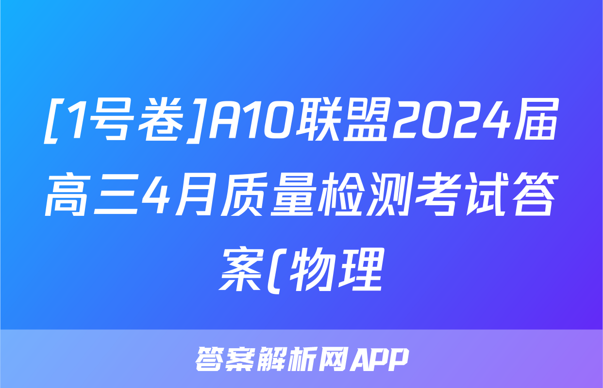 [1号卷]A10联盟2024届高三4月质量检测考试答案(物理)正在持续更新,目前2024-2025英语周报答案网为大家整理了相关试题及答案,供大家查缺补漏,高效提升成绩。