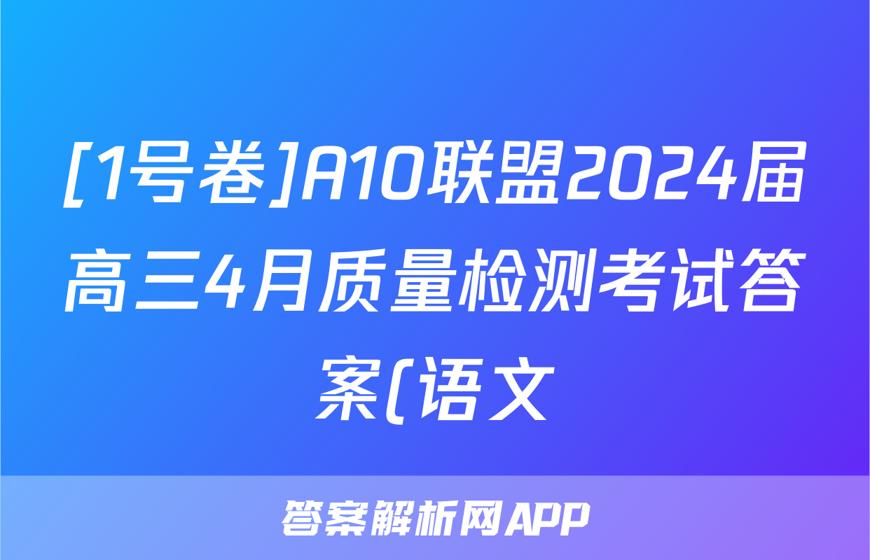 [1号卷]A10联盟2024届高三4月质量检测考试答案(语文)正在持续更新,目前2024-2025英语周报答案网为大家整理了相关试题及答案,供大家查缺补漏,高效提升成绩。